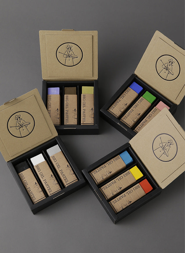 The BIG OIL PASTEL series is designed to provide a “rich and soft” texture and “enjoyable and comfortable” works to draw with, by incorporating as much high-quality fade-resistant pigments and highly refined mineral oil as possible. As such, BIG OIL PASTEL series firmly adhere to the surface in stronger colors and can give effects like oil paints. BIG OIL PASTEL series may be used with oil paint solvent, and over oil paints and/or watercolors.