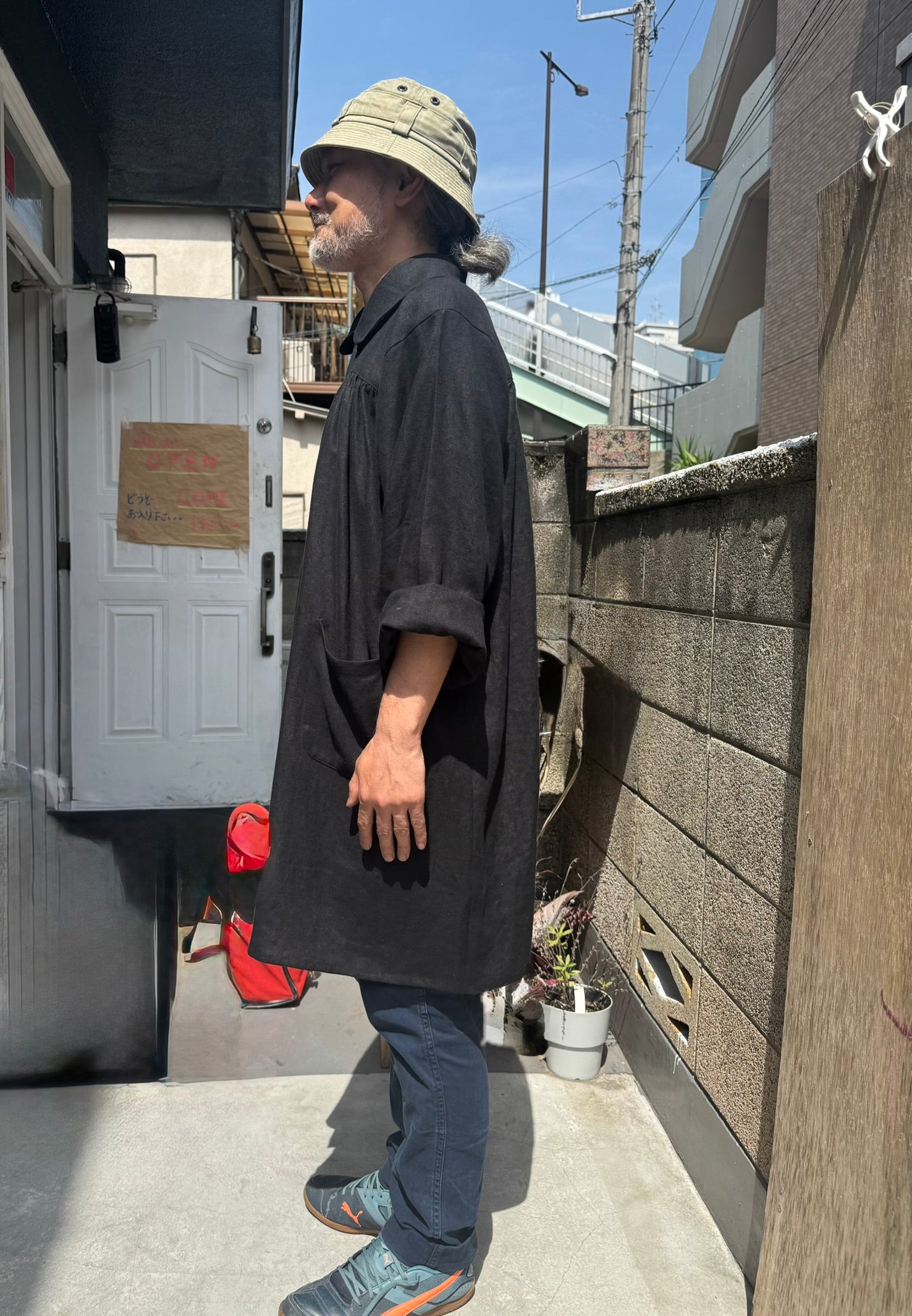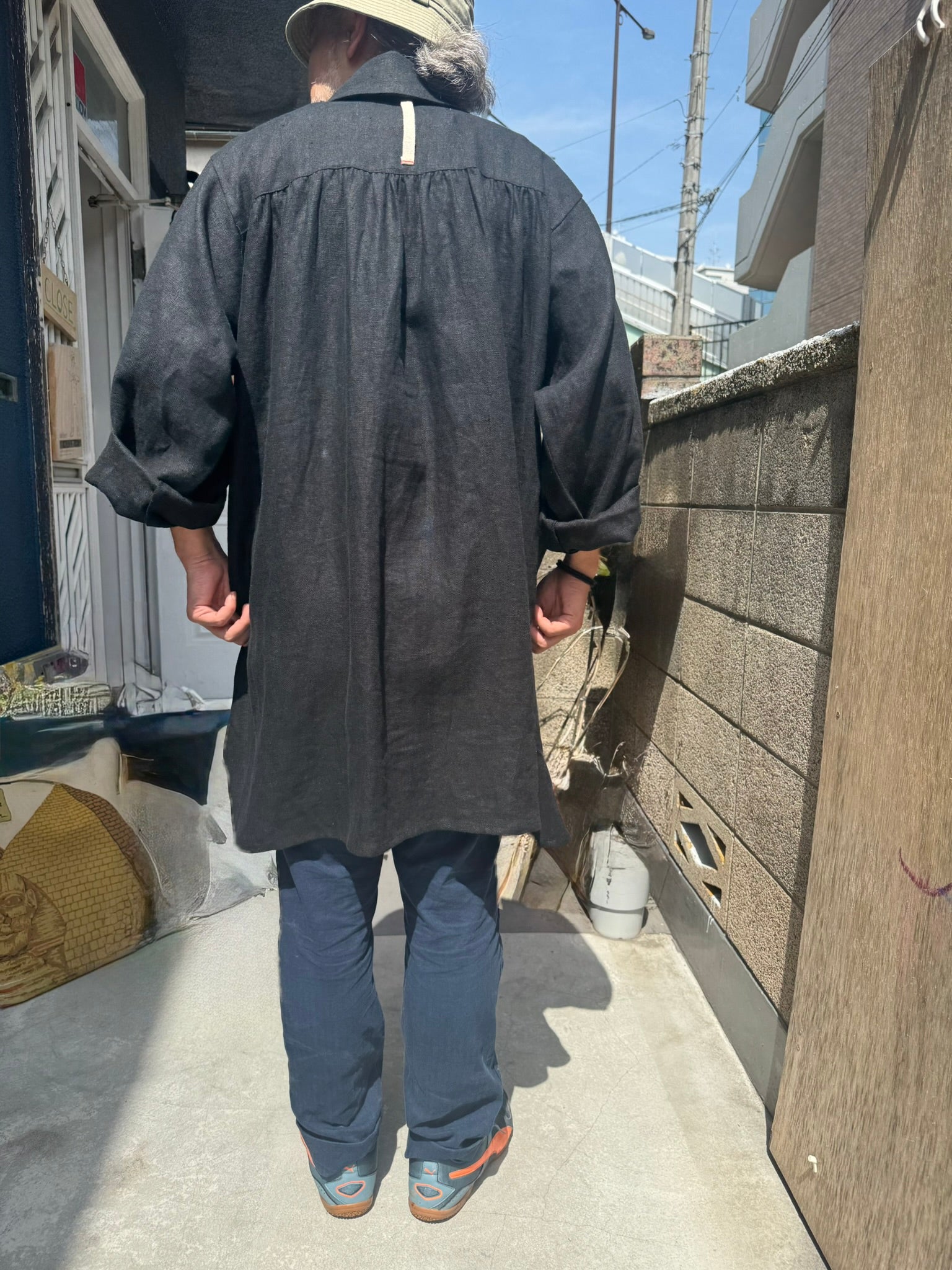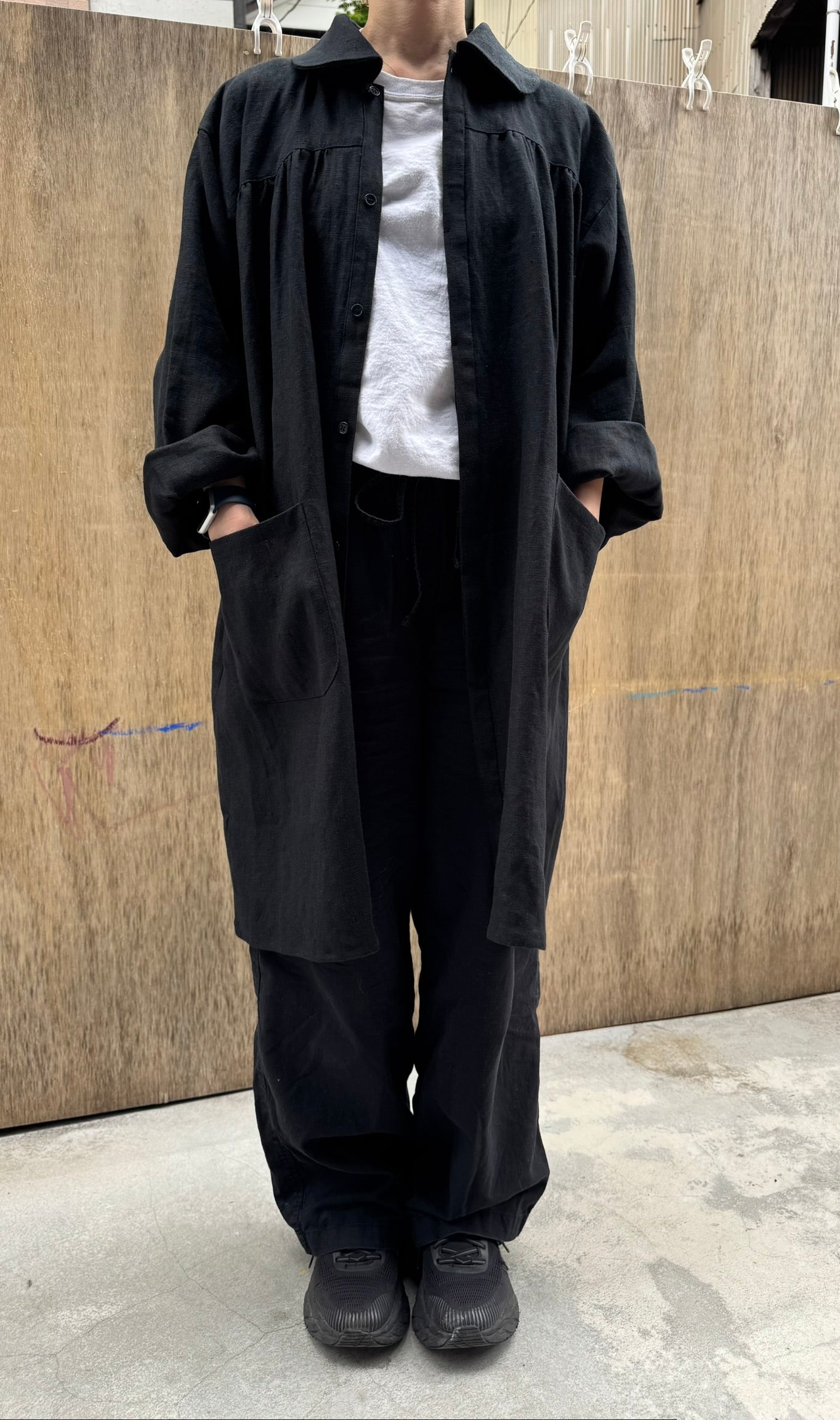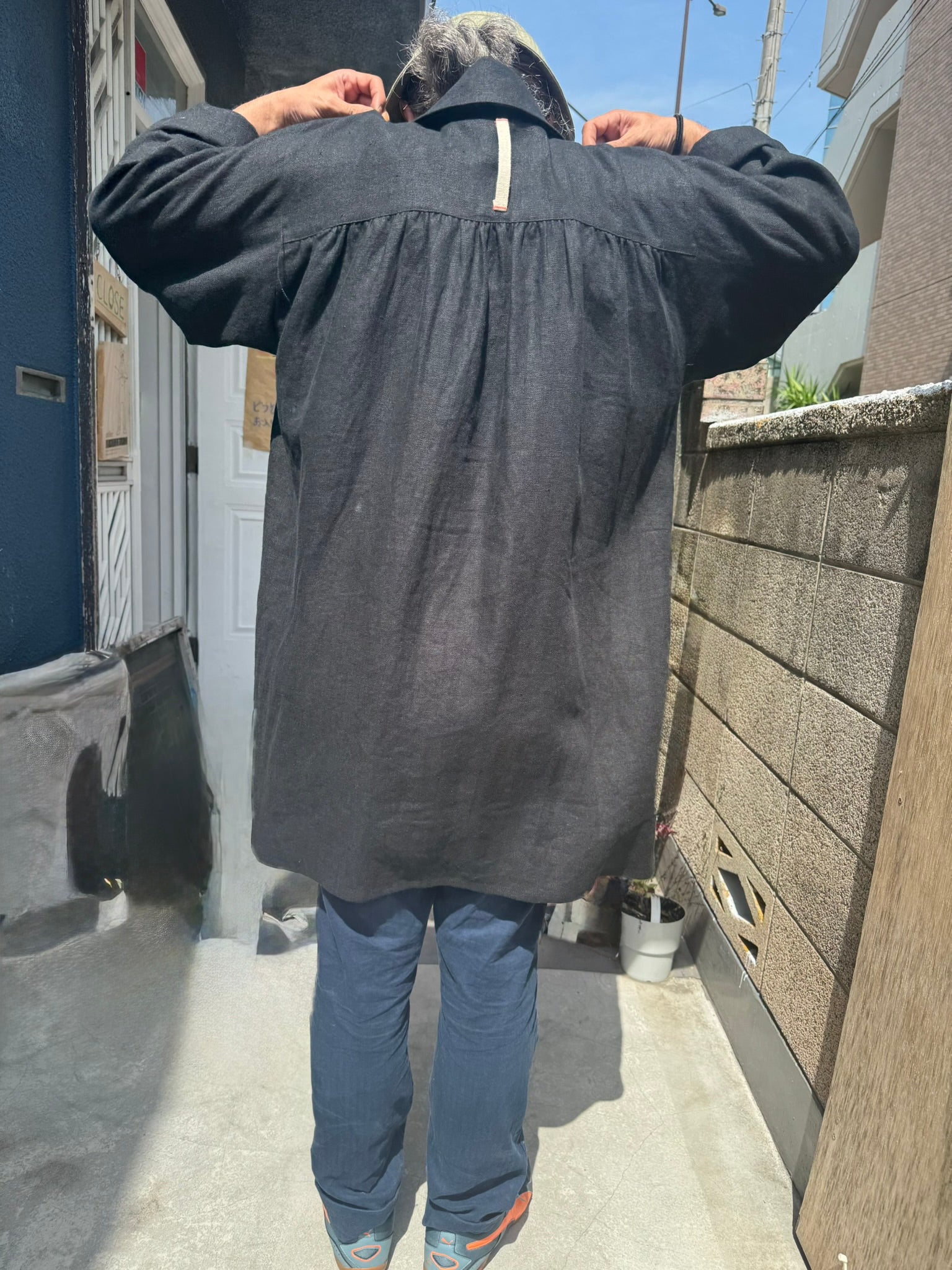 The wide sleeves and generous body allow for comfortable movement, even when layered over heavy clothing. We designed it so that it could be worn as an outer garment as well.